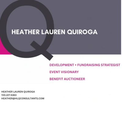 Heather segued from appraising and selling antiques to writing for Colorado Homes & Lifestyles magazine, to directing communications at Historic Denver, Inc., to working with and for hundreds of nonprofits in executive fundraising and event-planning as both an auctioneer and a development strategist. With over a decade of consultancy under her belt, she has built a balanced and comprehensive understanding of nonprofit strategic planning, budgeting, campaign/event, board, staff and donor engagement tools needed to meet challenges. As your development and fundraising consultant, she brings goal-driven, level-headed passion to each project, motivated by the desire to see you and your team streamline and set course for the sustainability and growth needed to continue your good work.
